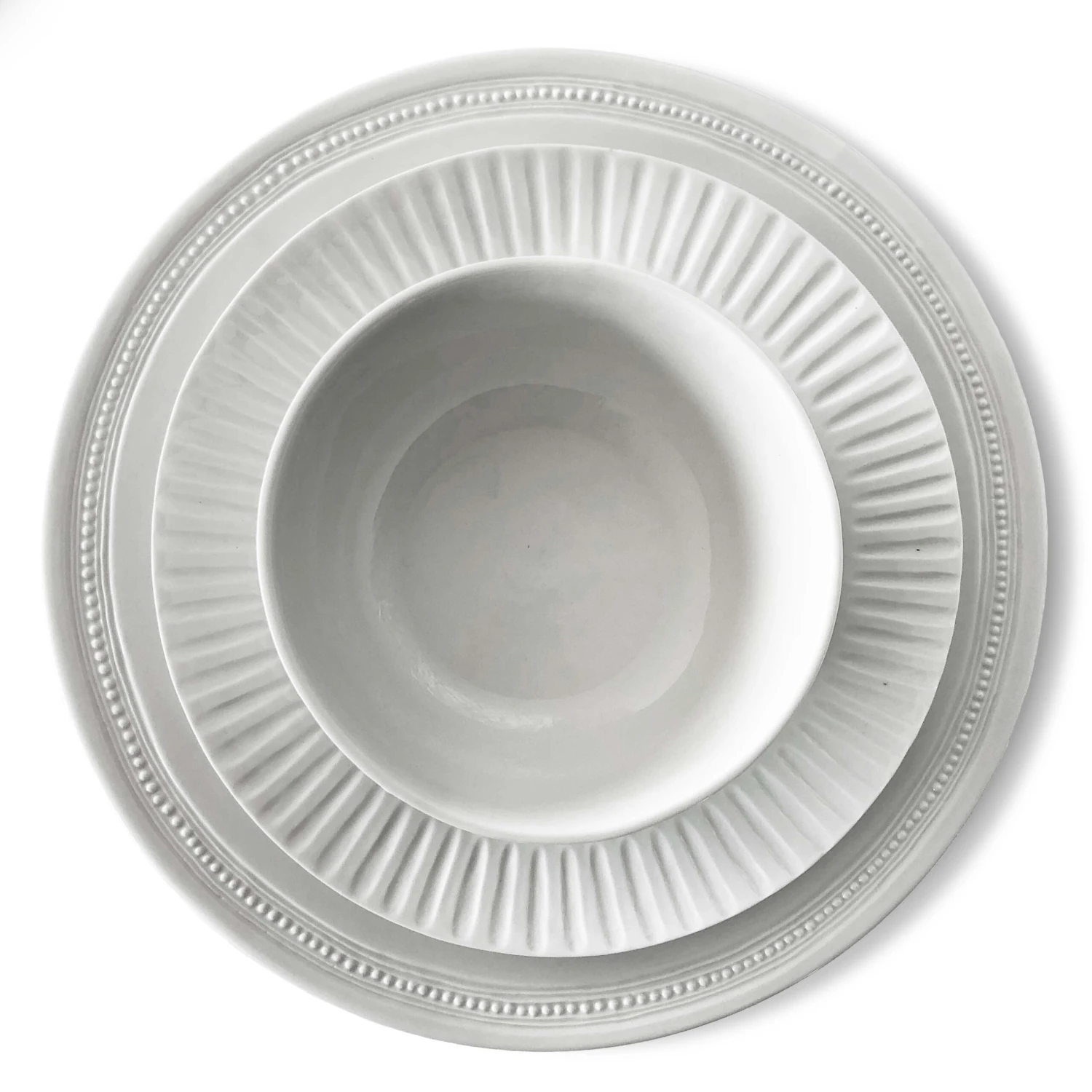 The Wheat Bowl stands alone in its design, but sits perfectly with the Dot and Column sets, as well as our wooden plates for a Woodland setting.